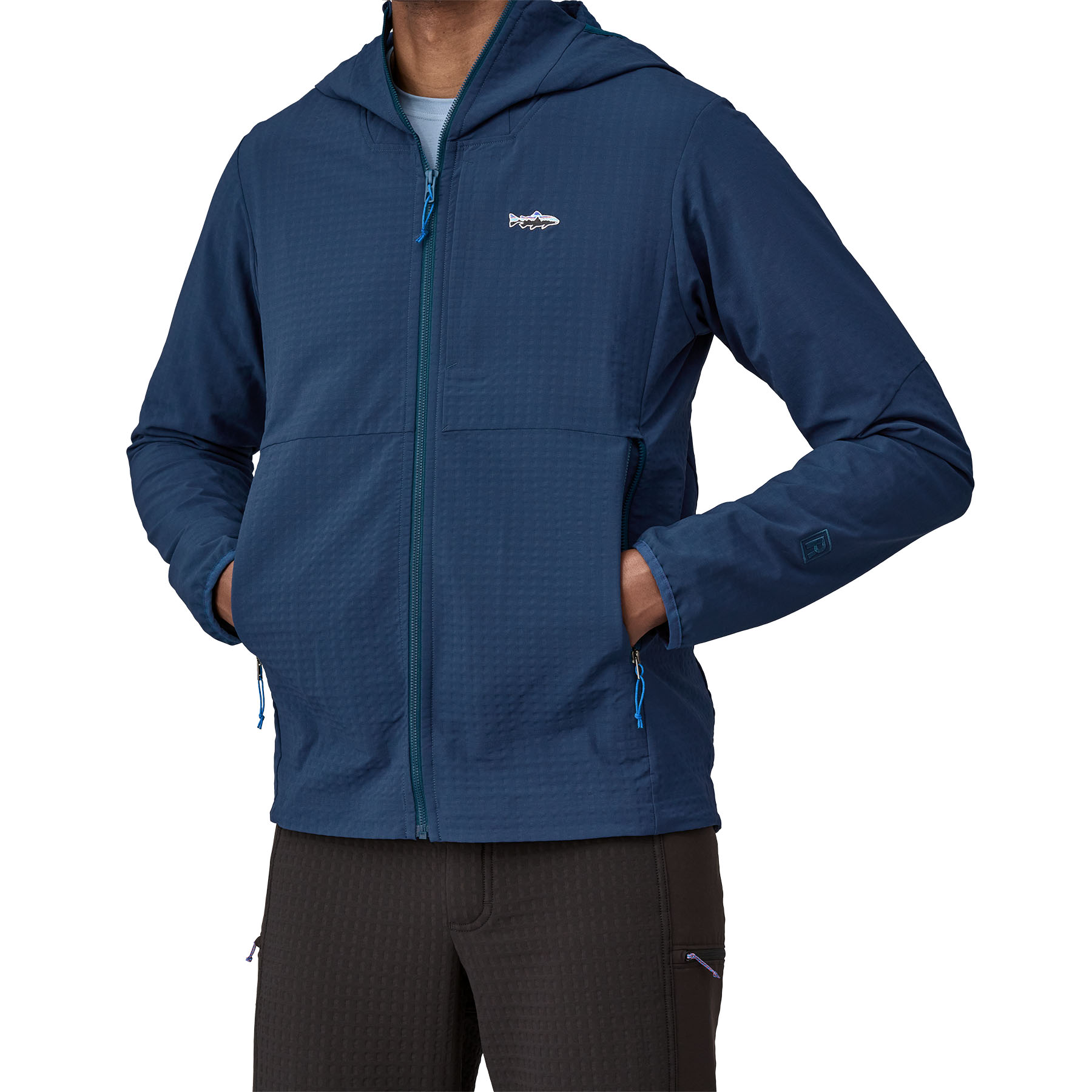 Designed for cool-weather adventuring, this crosslayer is warm, stretchy and breathable. Features include an abrasion- and weather-resistant shell, a durable water repellent (DWR) finish made without perfluorinated chemicals (PFCs/PFAS),and technical details engineered for on-the-water performance.